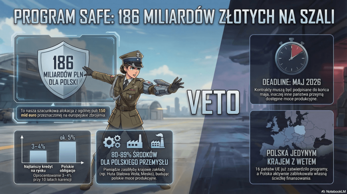 Problem polega na tym, że ustawa zawetowana przez prezydenta nie wprowadzała SAFE — bo program istnieje na poziomie prawa UE.