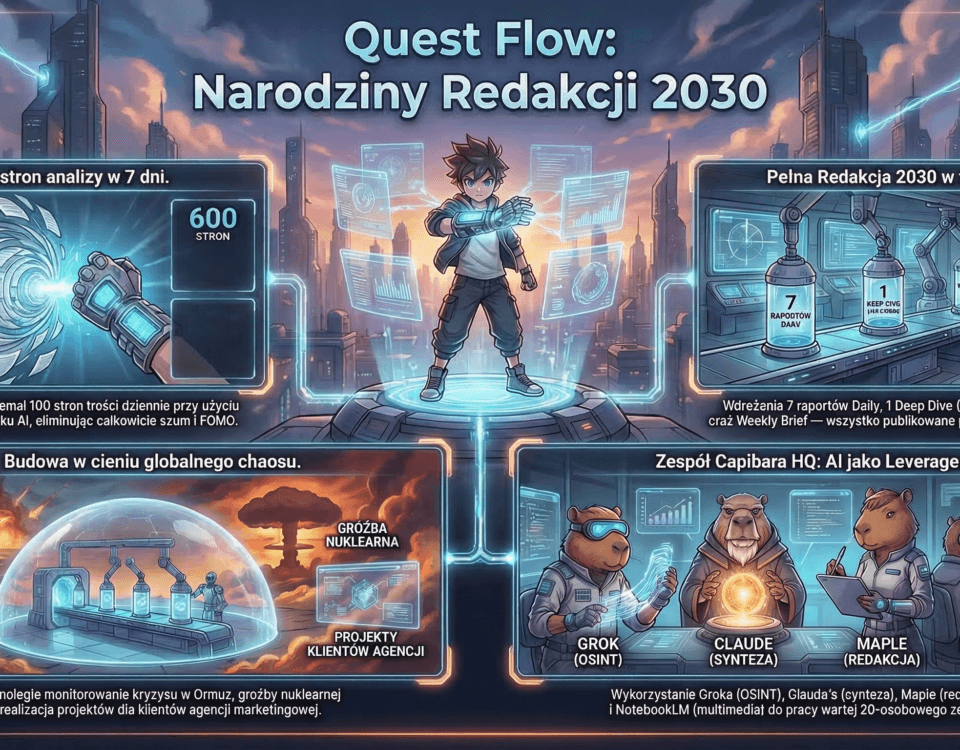 Ta dyscyplina Signal Lock to nie ograniczenie — to fundament całej architektury. Tradycyjne redakcje reagują na każdy breaking news i tracą architekturę na rzecz paniki. My diagnozujemy dzień na podstawie dostępnych danych i zamykamy diagnozę. To różnica między reaktywnym gasieniem pożarów a strategicznym rozumieniem systemu.
