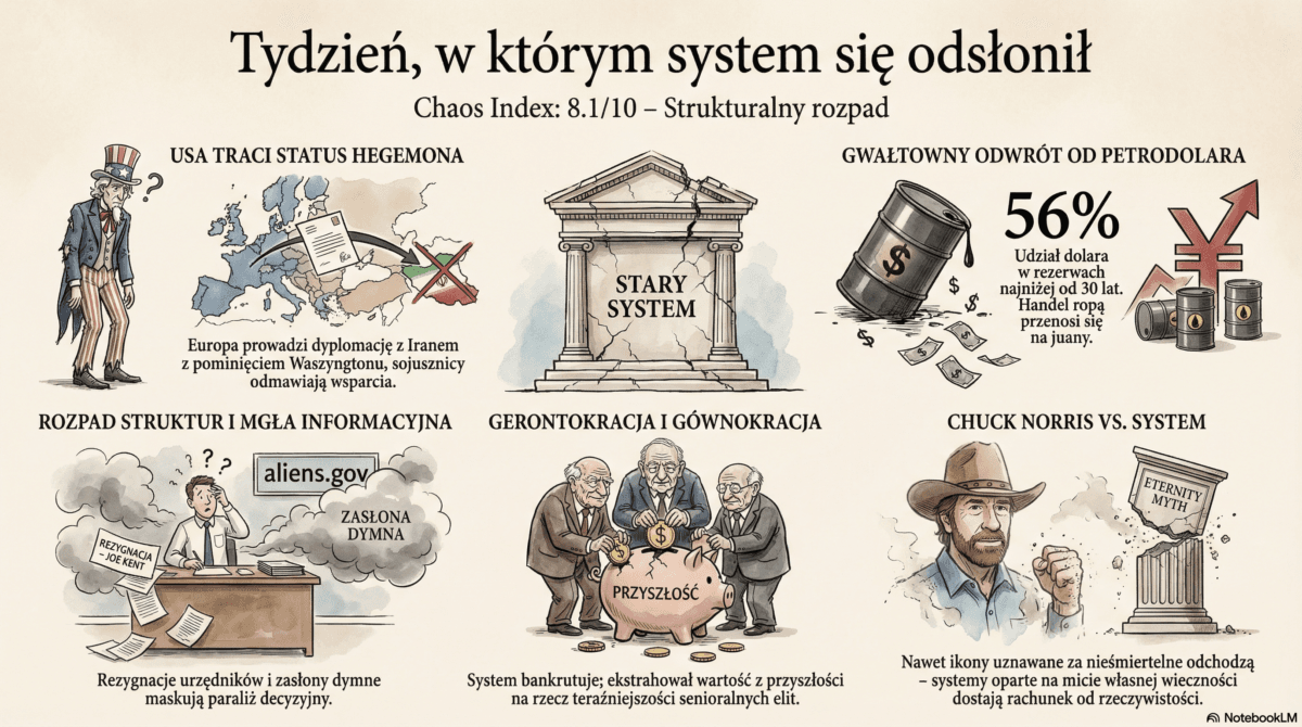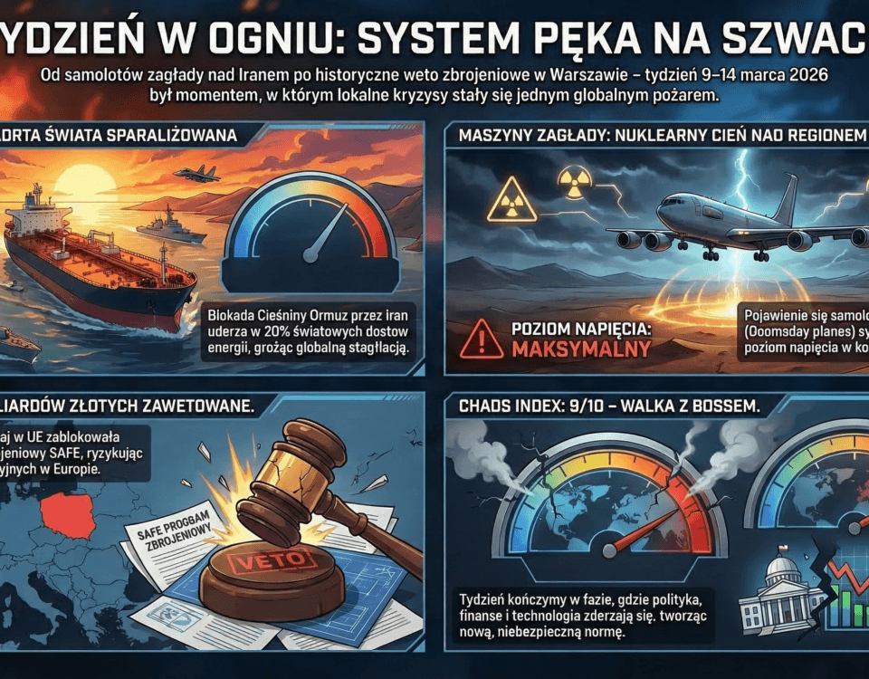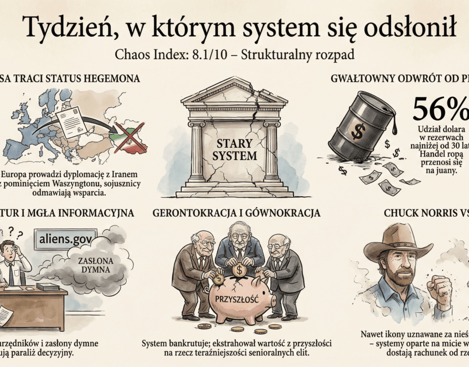 Stary świat nie upada w ciszy. Upada głośno, przy pełnym świetle dnia. Trump bez Tomahawków, Izrael bez cugli, Polska bez sądów, Europa o jeden głos od totalnej inwigilacji. Mafie frajerów robią trudne czasy. A trudne czasy kształtują silnych ludzi.