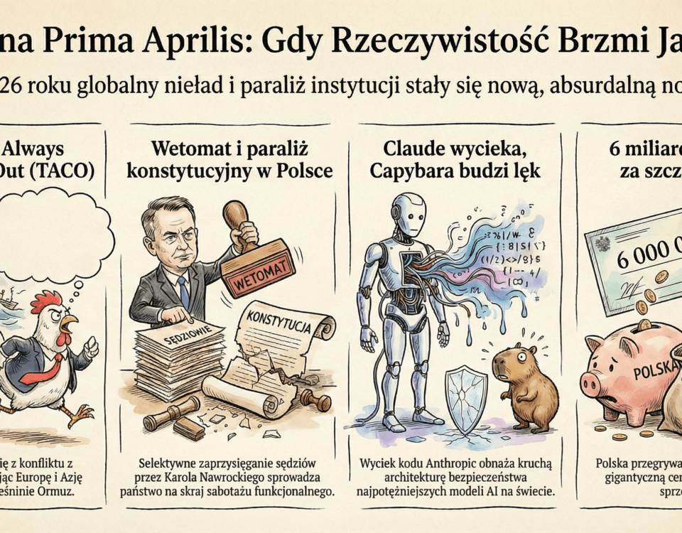 Świat 7 kwietnia 2026 roku wygląda tak: ultimatum nuklearnego kraju upływa o 2 w nocy. System finansowy zbudowany przez Kissingera formalnie się sypie. Węgry są potwierdzonym koniem trojańskim Rosji w Europie. Polska rządząca koalicja komentuje aferę kryminalną słowem „wygląda źle” – zamiast wziąć bandytów za mordy. A służby, które przez lata niszczyły niezależnych dziennikarzy, dalej robią to samo, ale pod nowym szyldem.