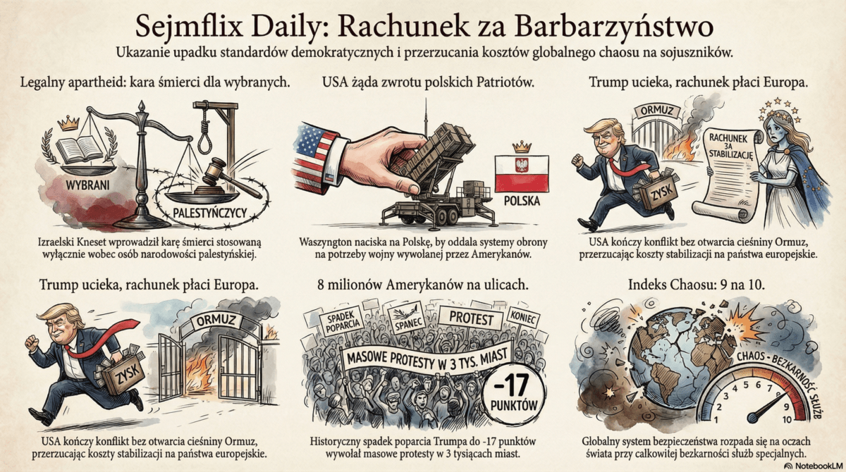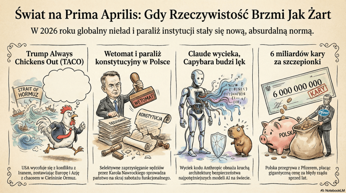 Świat 7 kwietnia 2026 roku wygląda tak: ultimatum nuklearnego kraju upływa o 2 w nocy. System finansowy zbudowany przez Kissingera formalnie się sypie. Węgry są potwierdzonym koniem trojańskim Rosji w Europie. Polska rządząca koalicja komentuje aferę kryminalną słowem „wygląda źle” – zamiast wziąć bandytów za mordy. A służby, które przez lata niszczyły niezależnych dziennikarzy, dalej robią to samo, ale pod nowym szyldem.