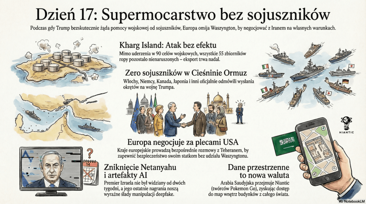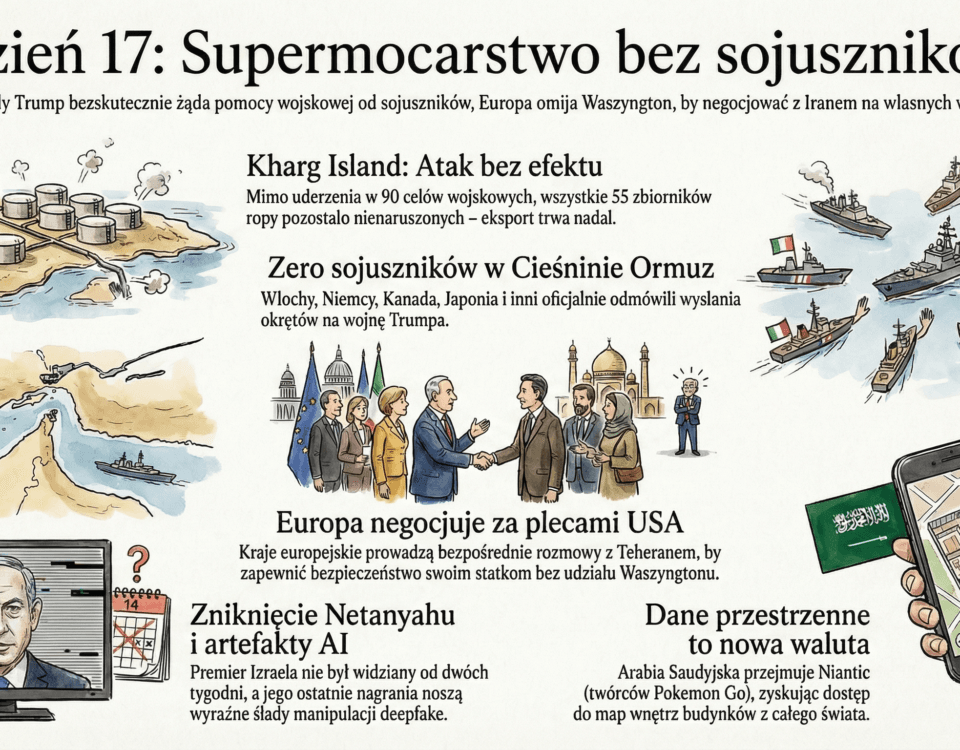 Trump żąda pomocy od sojuszników których obrażał przez rok. Wszyscy odmawiają. Europa zaczyna negocjować z Iranem bez Waszyngtonu. Netanyahu nie pojawia się publicznie od dwóch tygodni […]