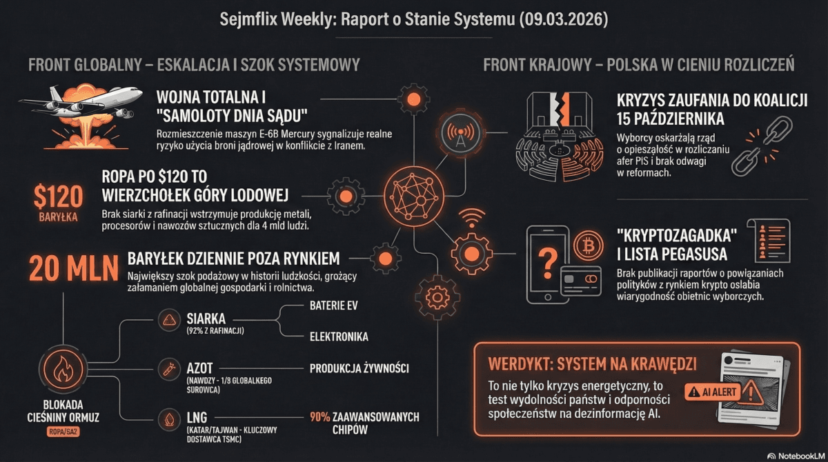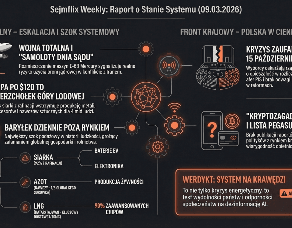 Iran uderza w globalny rynek energii. Trump odpala „Pearl Harbor” na konferencji. Biały Dom rejestruje aliens.gov. W Polsce weto podtrzymujące system nadużyć i kolejne pęknięcia w […]